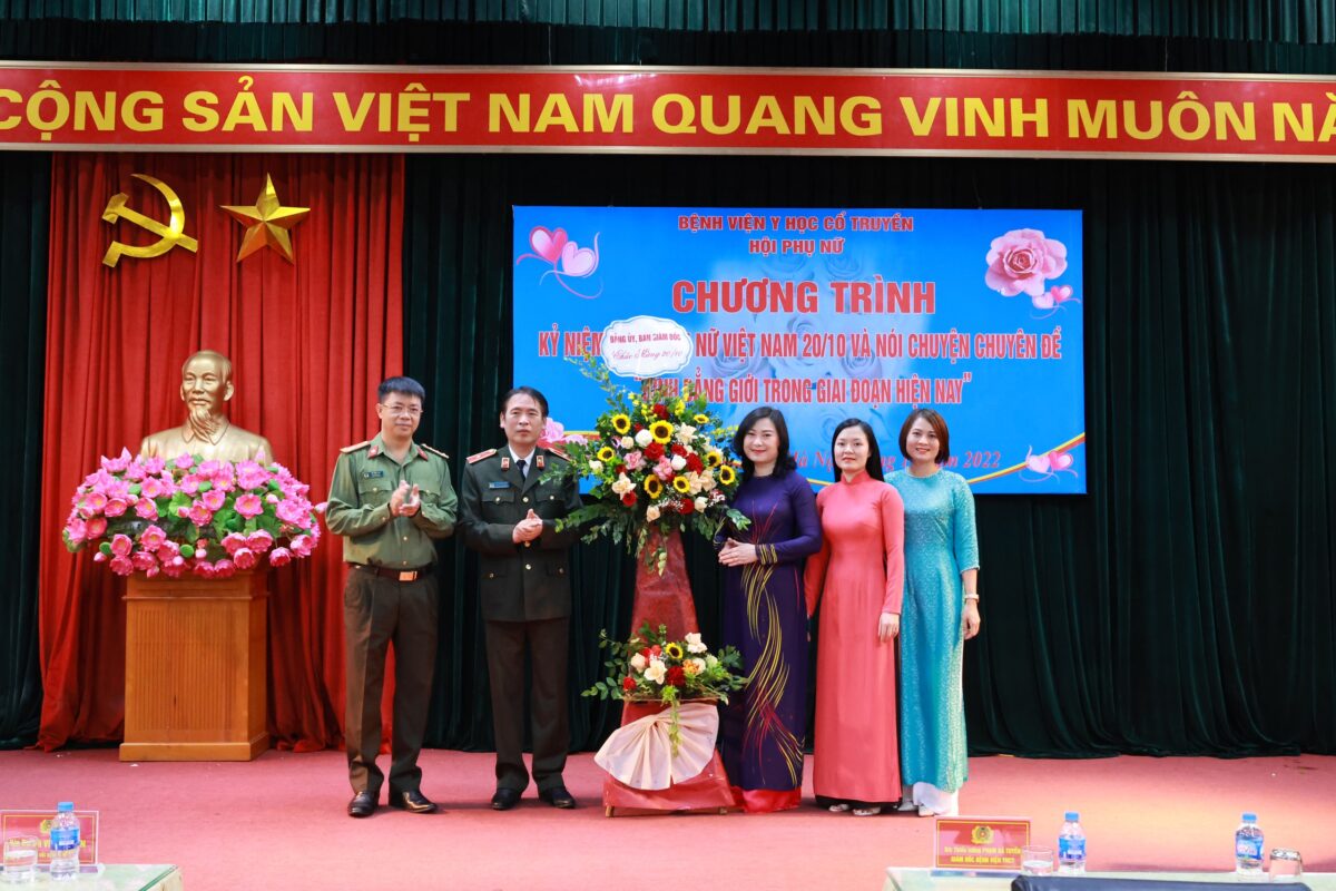 Hòa trong không khí phấn khởi và tự hào của phụ nữ cả nước chào mừng 92 năm thành lập ngày thành lập Hội Liên Hiệp Phụ nữ Việt Nam (20/10/1930 – 20/10/20220, sáng nay ngày 20/10/2022 Hội Phụ nữ Bệnh viện YHCT Bộ Công an đã long trọng tổ chức Lễ Mít ting kỷ niệm ngày Phụ nữ Việt Nam 20/10 và buổi nói chuyện chuyên đề“ Bình đẳng giới trong giai đoạn hiện nay”. Đến dự buổi lễ vinh dự có mặt đ/c thiếu tướng Phạm BáTuyến- Bí thư Đảng ủy, Giám đốc BV; Đ/c Đại tá Vũ Văn Sơn, Thường vụ Đảng ủy Phụ trách công tác Phụ nữ, Phó GĐ BV; Cùng các đ/c đại diện Đảng ủy, Ban giám đốc BV, Lãnh đạo các khoa phòng, đại diện các tổ chức quần chúng trong BV; Thầy NguyễnVănThanh – Phó Giám đốc Trung tâm kỹ năng sống văn hóa Việt, giảng viên Học viện Phụ nữ Việt Nam.